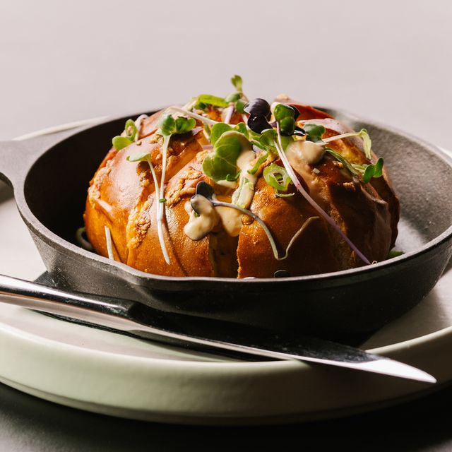 Slow Cooked Onion Puree Drizzled with Root Beer Cream; Served with Toasted Brioche V